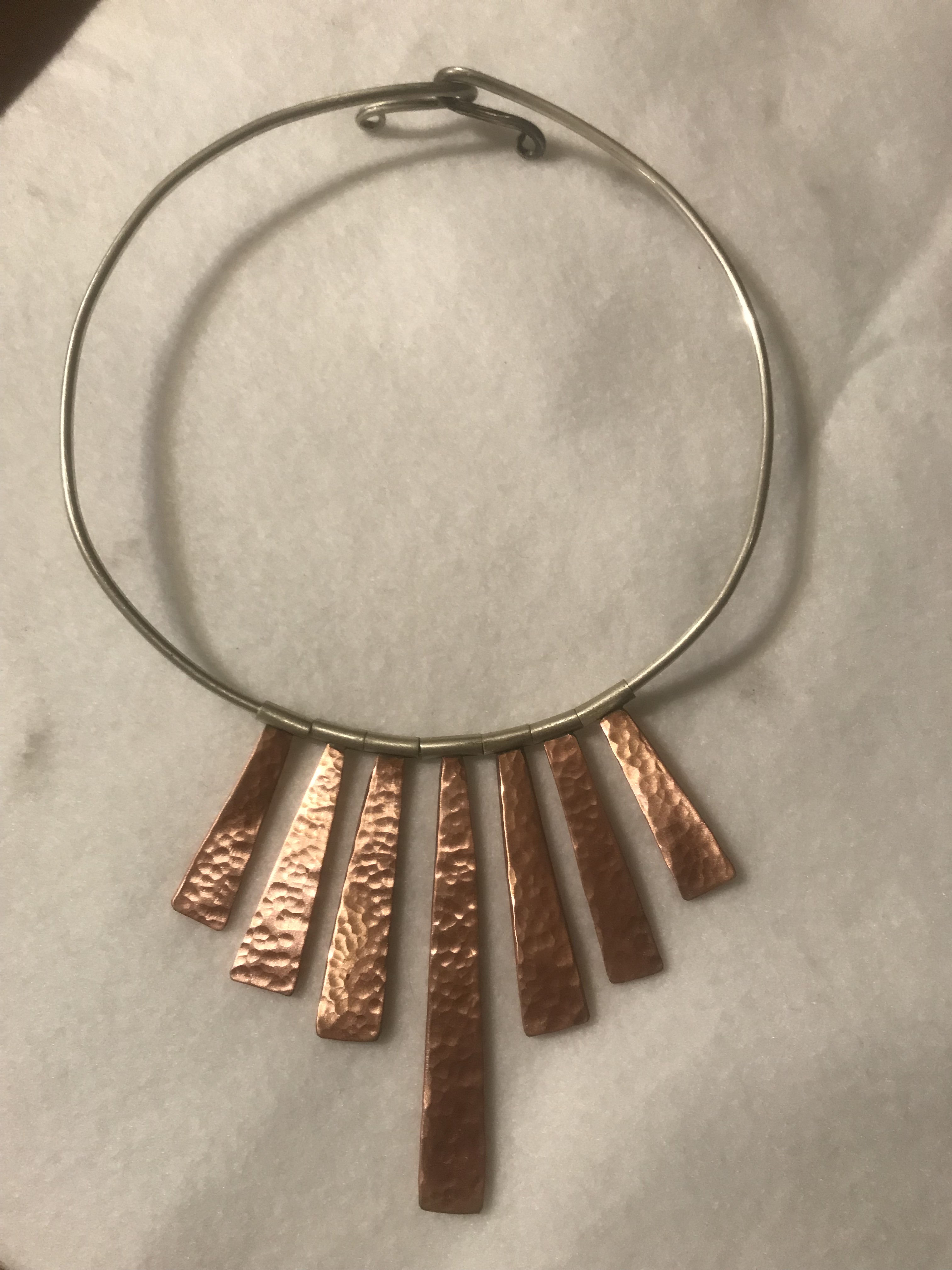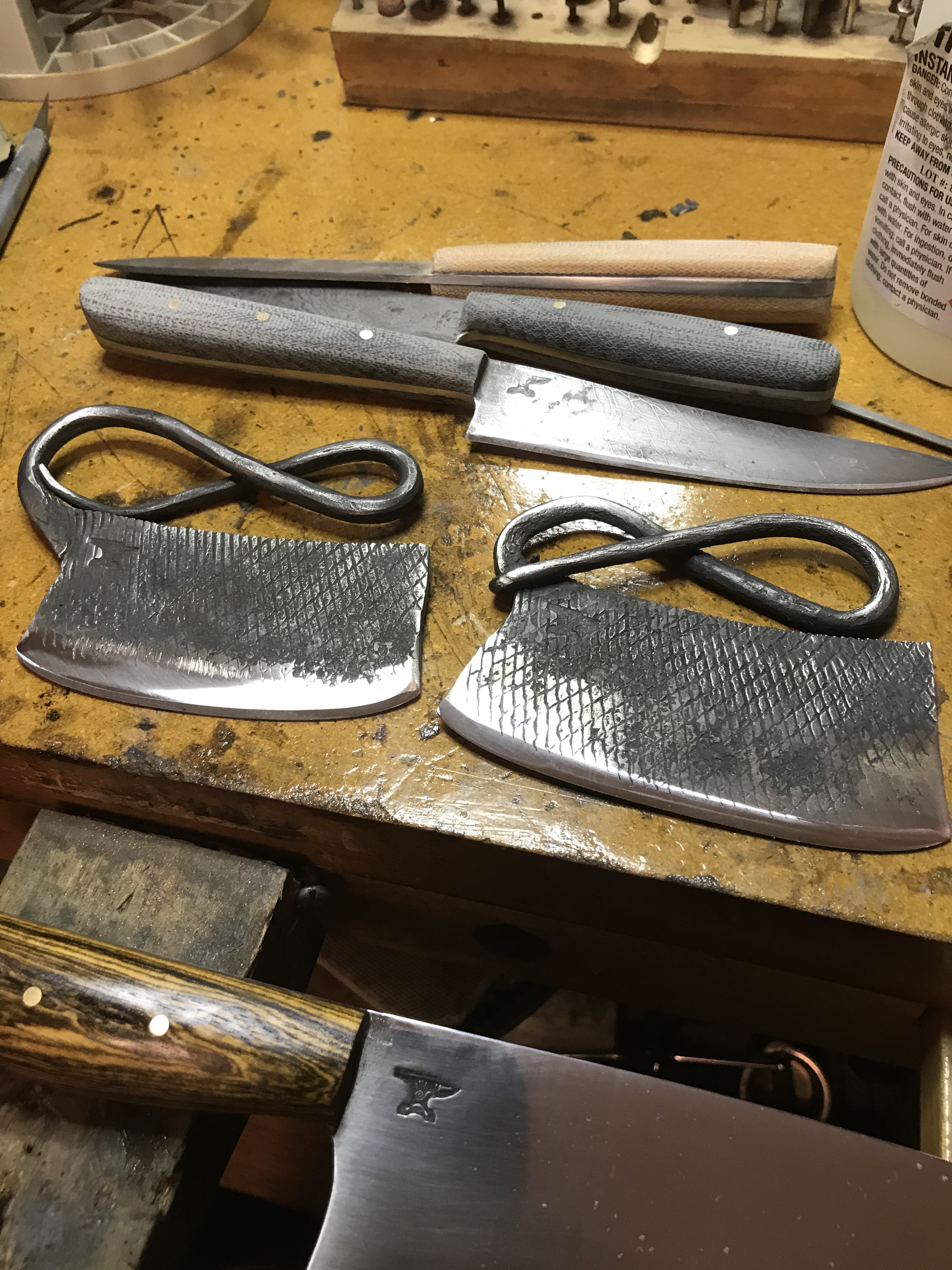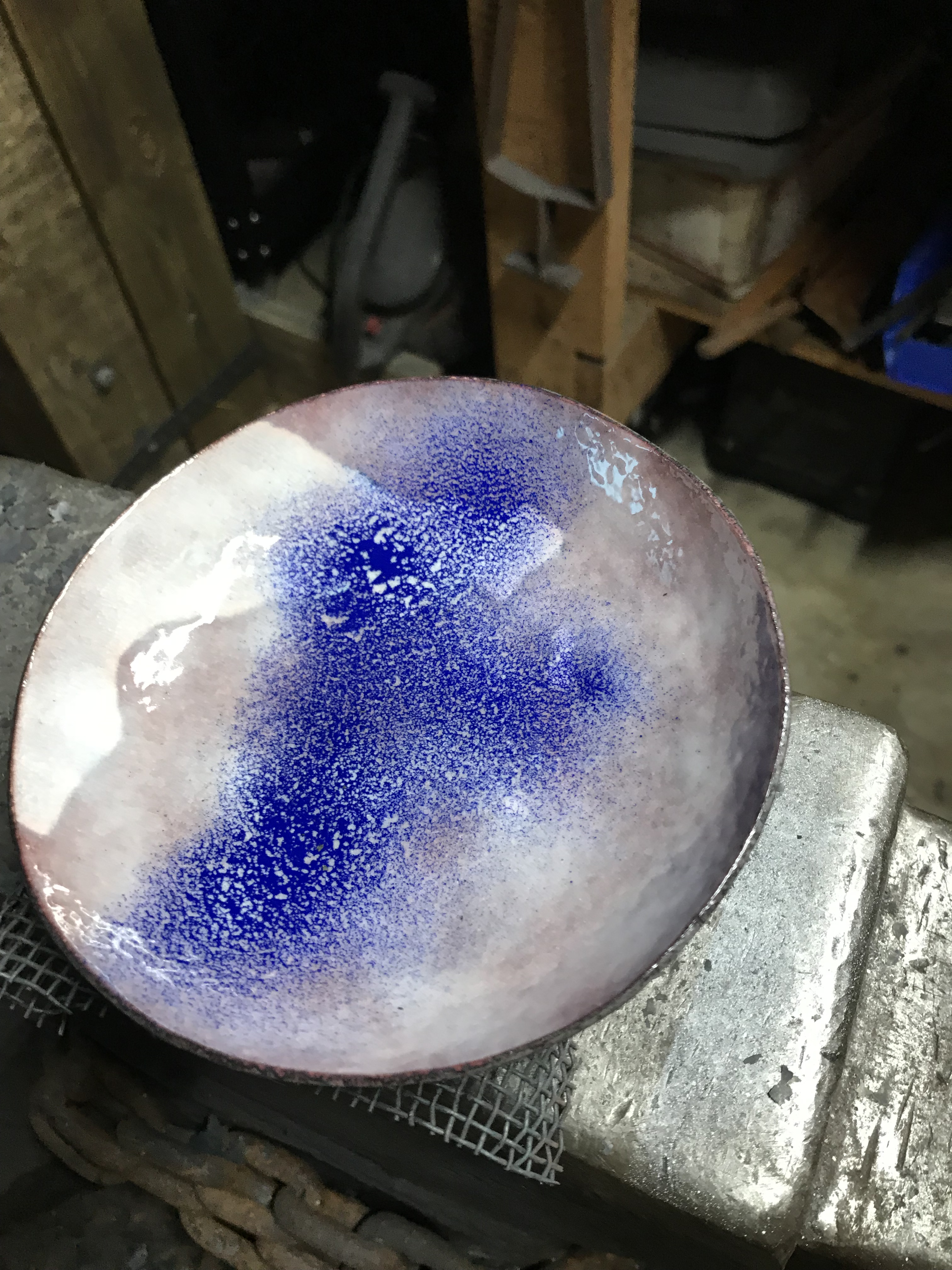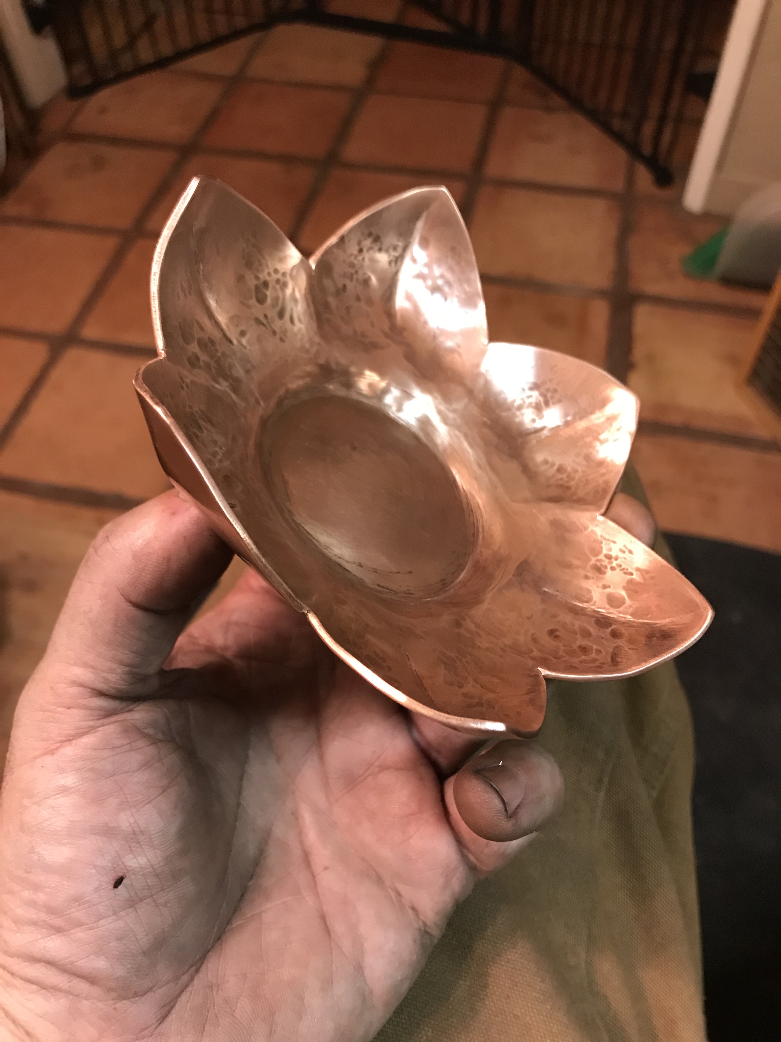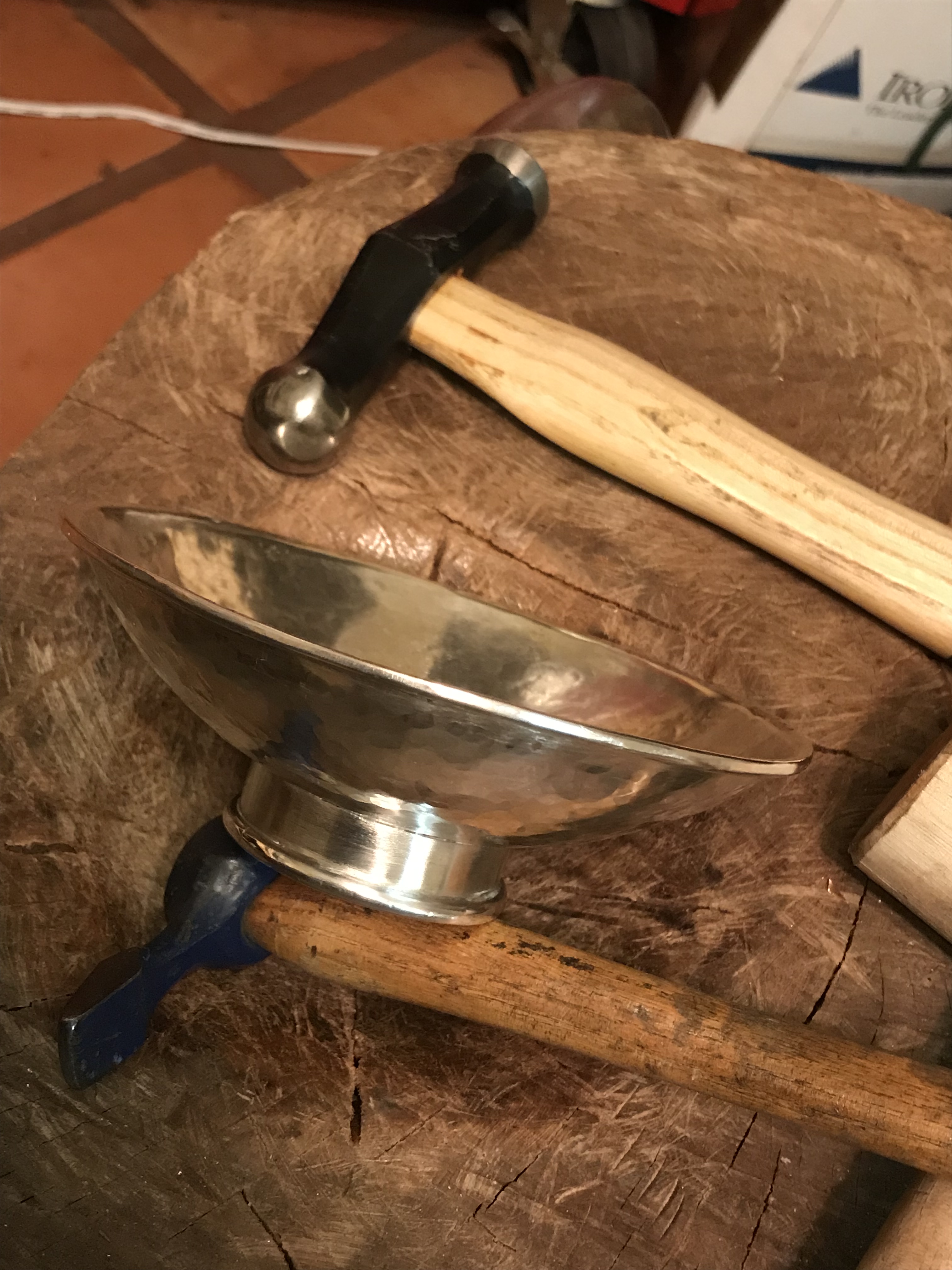 Works in progressEDC knivesNeckpiece: Enameled copper and sterling silverNeckpiece: Hammered copper and sterling silverSterling silver salt cellarWork in progress: 8″ chef’s knife from reclaimed sawmill bladeWork in progress: 12″ raised copper bowl12: copper bowlCopper lotus bowl 6″Leather worker’s round knife6″ copper lotus bowl chemical patinaEnameled salt cellars with copper spoonWorks in progressRaised copper bowl April 2018Steel lotus bowl6″ enameled bowl